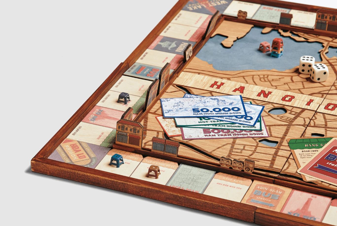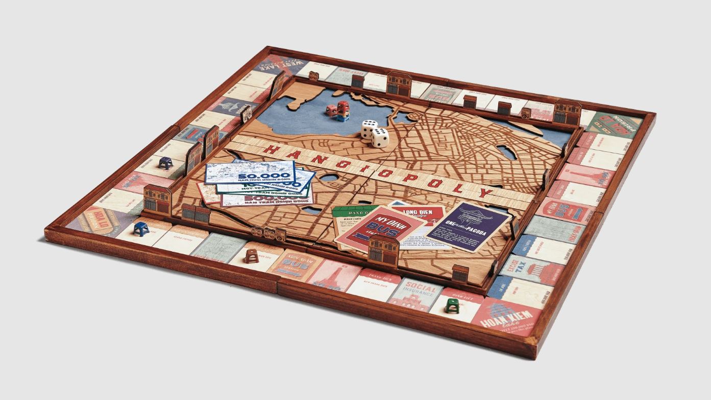 Đắm chìm vào một trải nghiệm Hà Nội mới. Sự kết hợp màu sắc hơi hướng vintage cổ điển đã gợi lại những ký ức Hà Nội xưa. Với những địa điểm nổi tiếng và nét đẹp văn hóa, bạn hãy thử đắm chìm vào cuộc hành trình mưu sinh khởi nghiệp và trải nghiệm một Hà Nội rất riêng, bắt đầu cùng với chiếc ghế đầu đặc trưng trên bộ cờ tỷ phú Hanoiopoly.